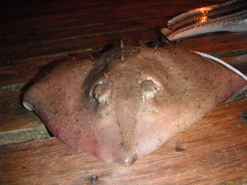 Da fikk jeg virkelig nooe og skrive om igjen etter enda en helg ute med fiskestang langs vår lange kyst et sted. Og på lørdagen etter en del timers fiske og hvor man har lurt på hva som kunne ha vært feil med hvordan jeg fisker og sånt får jeg en tlf og etter og snakka litt i tlf ser at stangtuppen bøyer seg litt før snøre forsvinner i 100 uttover og jeg bare sier hade til han jeg snakker med og setter inn et tillslag! FAST FISK!! etter en ganske ok kamp får jeg endelig se fisken min og jeg får noen til og hove den for meg for ser at den bare henger så vidt det er i 1 liten krok og etter litt kløning med hoven hvor jeg truer med og drepe han viss han somler bort fisken kan han hove kveita for meg på andre forsøket og når han har løfta opp kveita og jeg skal til og ta ut kroken ser jeg at det er kunn agntråden igjen i kjeftn på kveita! Kveita var rundt 2-3 kilo og under minstemålet så jeg fikk da bært fisken pent ned til vannet og satt den ut igjen og den forsvant bra raskt ned mot dypet hvor den skal bli en 30-50 kilo til neste gang jeg kommer for og ta den!